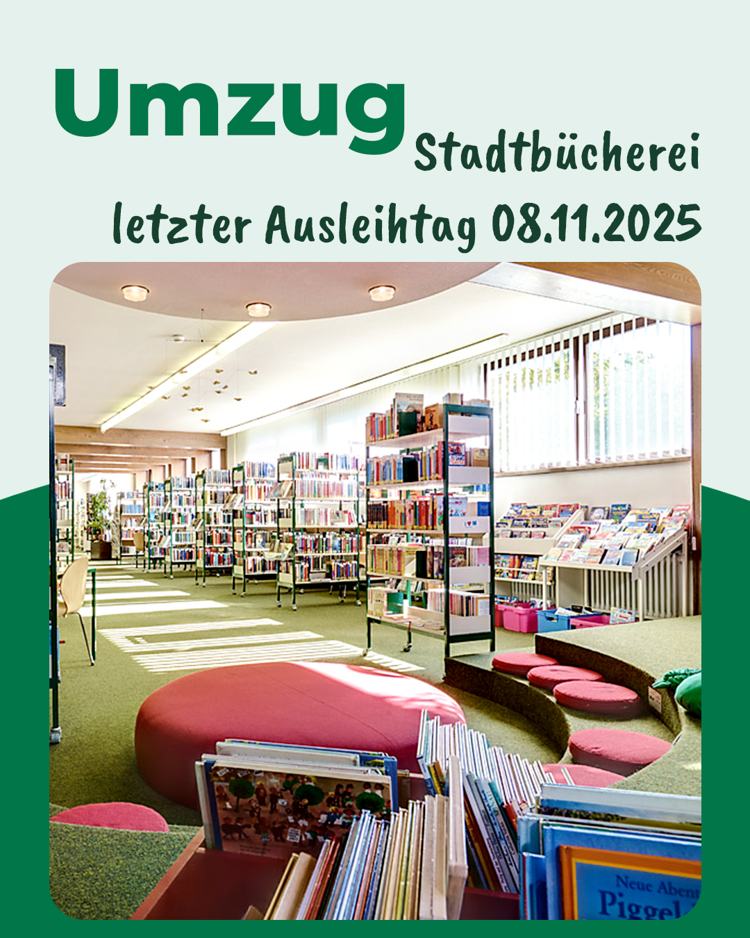Es ist soweit: Die Stadtbücherei verlässt ihre bisherigen Räume in der Stadthalle und zieht in die Hauptstraße 35. Ab Dienstag, den 11. November 2025,…