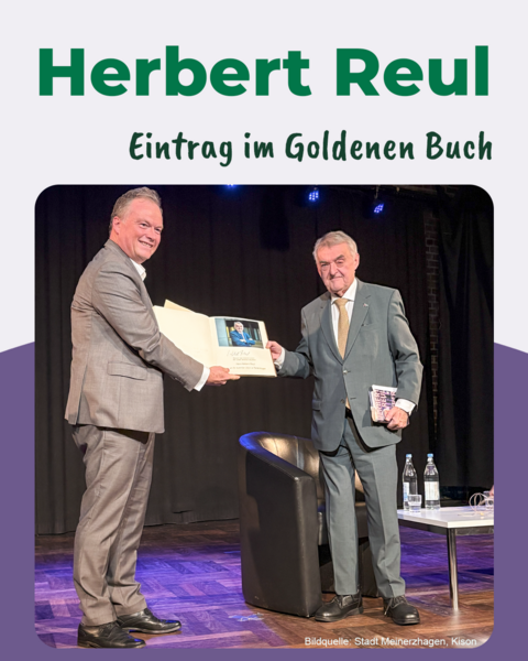 Mit Herbert Reul ist nun eine weitere Persönlichkeit des öffentlichen Lebens im Goldenen Buch der Stadt Meinerzhagen verewigt, dessen erster Eintrag auf das Jahr 1962 zurückgeht. Neben dem NRW-Innenminister haben sich verschiedene Persönlichkeiten und Ehrengäste der Stadt Meinerzhagen ins Goldene Buch eingetragen.
