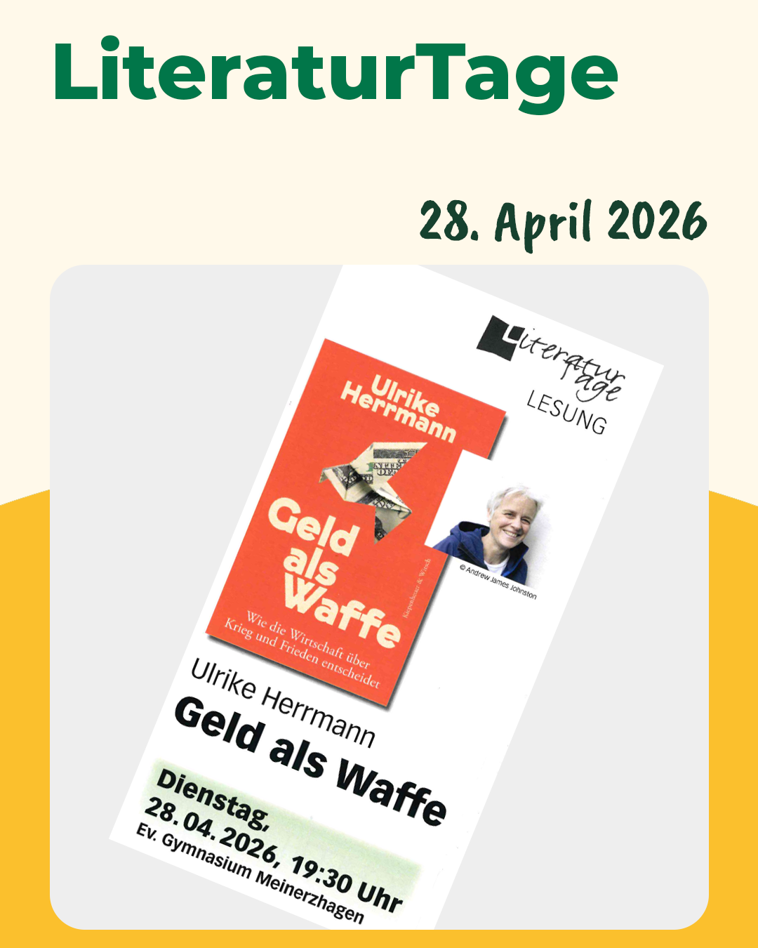 Mit einem hochaktuellen Thema befassen sich die nächsten LiteraturTage: Ulrike Herrmann, Wirtschaftskorrespondentin der taz und Bestseller-Autorin,…