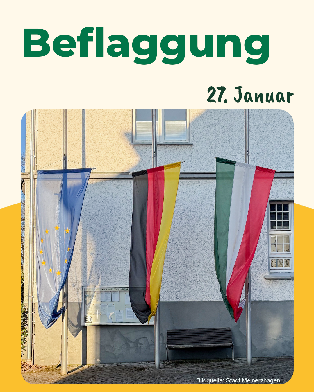Heute wehen die Flaggen vor dem Rathaus auf halbmast – eine Geste, mit der wir in Deutschland an die Opfer des Nationalsozialismus denken.